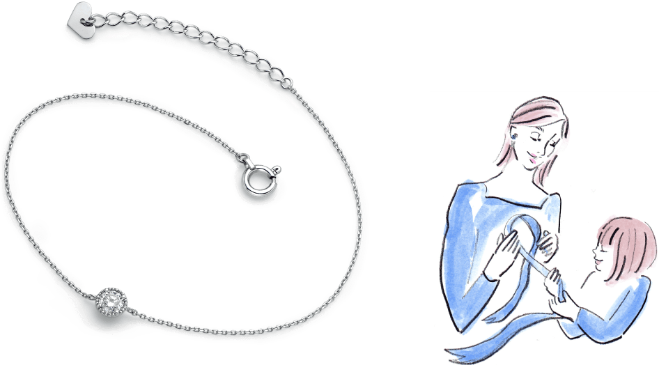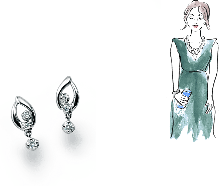 プラチナは化学的に安定していて、変質や変色の心配がありません。また年齢や流行にとらわれず、どんなファッションにもマッチするので、永く身につけることができます。