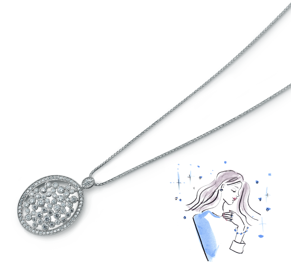 プラチナ・ジュエリーはほかの貴金属のジュエリーに比べると、際立って高純度です。また、プラチナの色はまじりけのない天然の白。純粋さを象徴する輝きです。