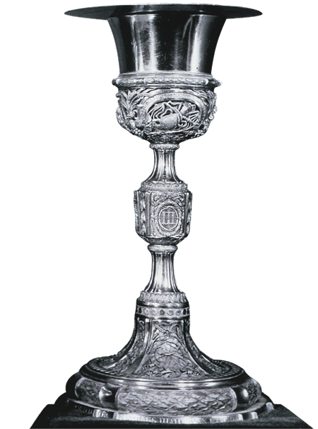 プラチナ愛好家として知られたのが、スペイン王カルロス3世です。科学者シャバノーに精錬技術を研究させ、1789年、ローマ法王ピウス6世に献上したのが「プラチナの聖杯」です。プラチナ地金を使って銀細工師が制作したこの高さ90センチ、重さ2キログラムの聖杯は、それまでヨーロッパで正当な評価を得られなかったプラチナが18世紀後半に入って最高の貴金属の地位を獲得したことを物語っています。