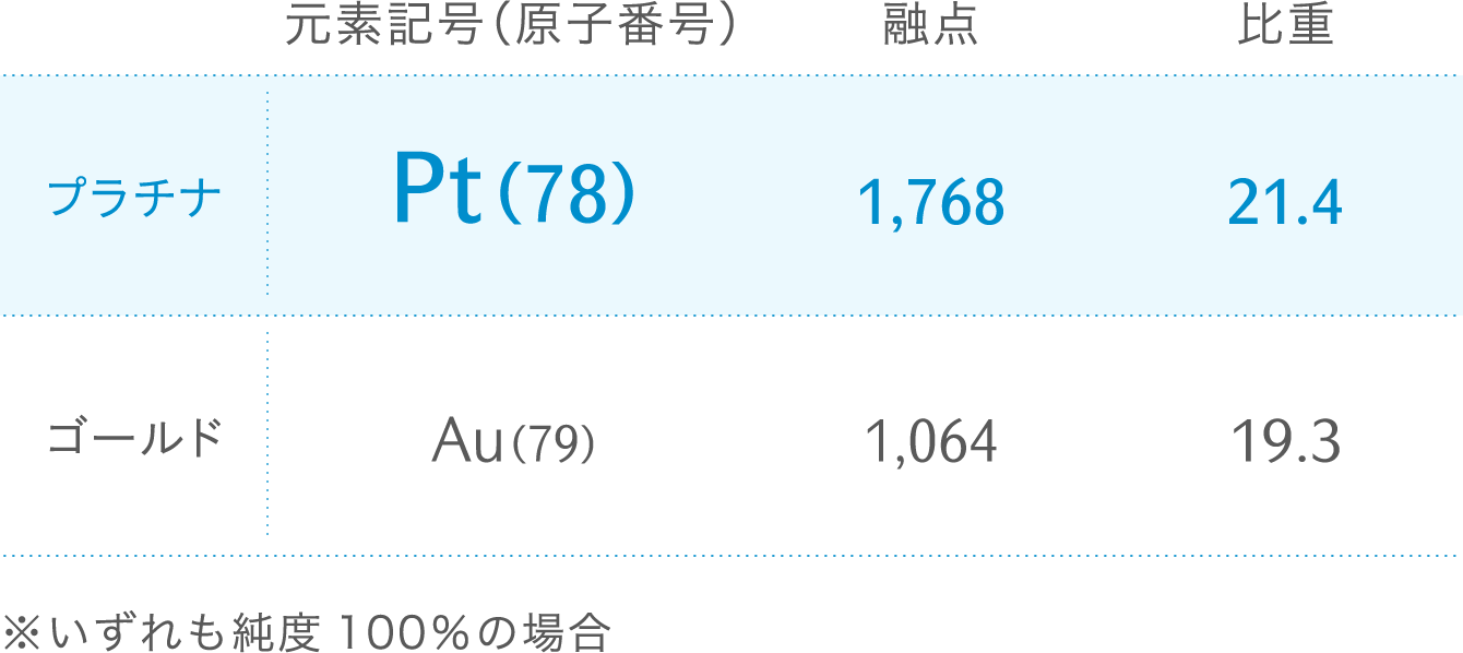 手にした時にずっしりとした重みが感じられるのがプラチナです。