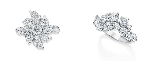 左:2.89カラットのダイヤを用いたピルエット・リング、右:クラスター・リング(2.33カラット)