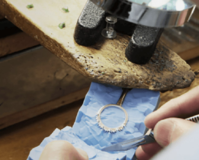 また、コンピューターで自由な原型を作ることができるので、さまざまなフォルムや宝石を入れ込んだ複雑なデザインのリングを作ることができます。