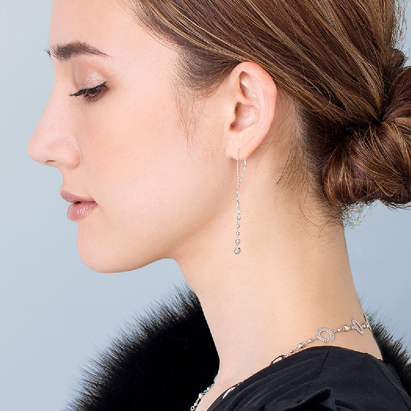 耳たぶが小さい、薄い方は、華奢なデザインのピアスが良く似合います。また、長さのあるピアスを身に着けることで、周りの視線を下にずらす効果が期待できます。