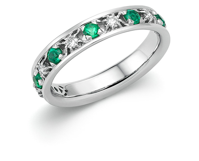 色とりどりの宝石の色を邪魔せず、本来の輝きを引き出せるのはプラチナの純粋な白色です。