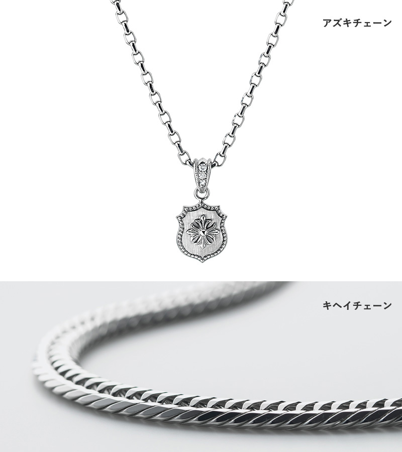 Cカンをつないだようなアズキチェーンは最もポピュラーなタイプです。細身のものが多いので、シンプルに身に着けたい方にぴったりです。
