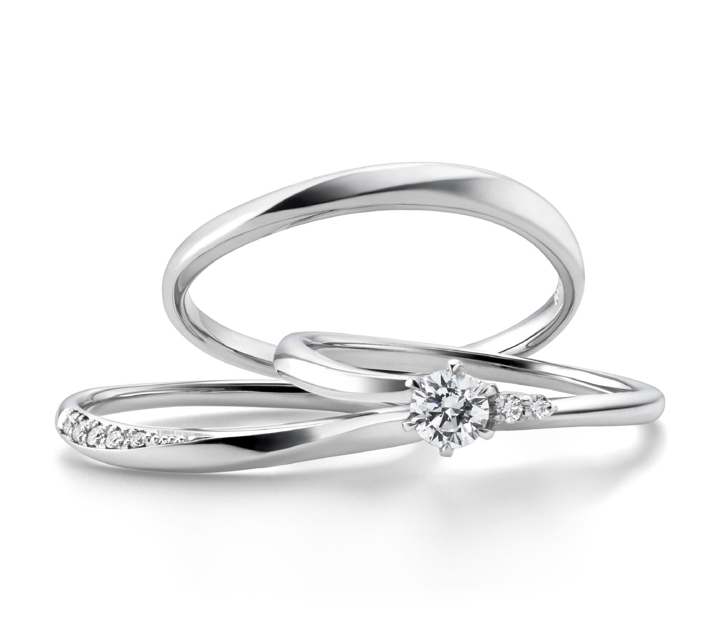 【No.16】 可憐なエンゲージリングがシンプルなマリッジリングに映え、フォーマルな雰囲気にもふさわしいセットです。