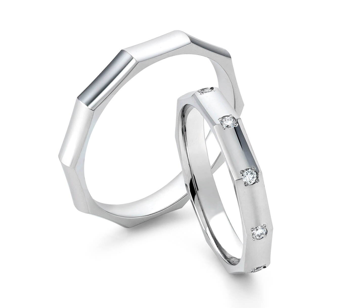 シャープなきらめきに、なめらかな着け心地。手を取り合うふたりの絆をダイヤで表現しました。