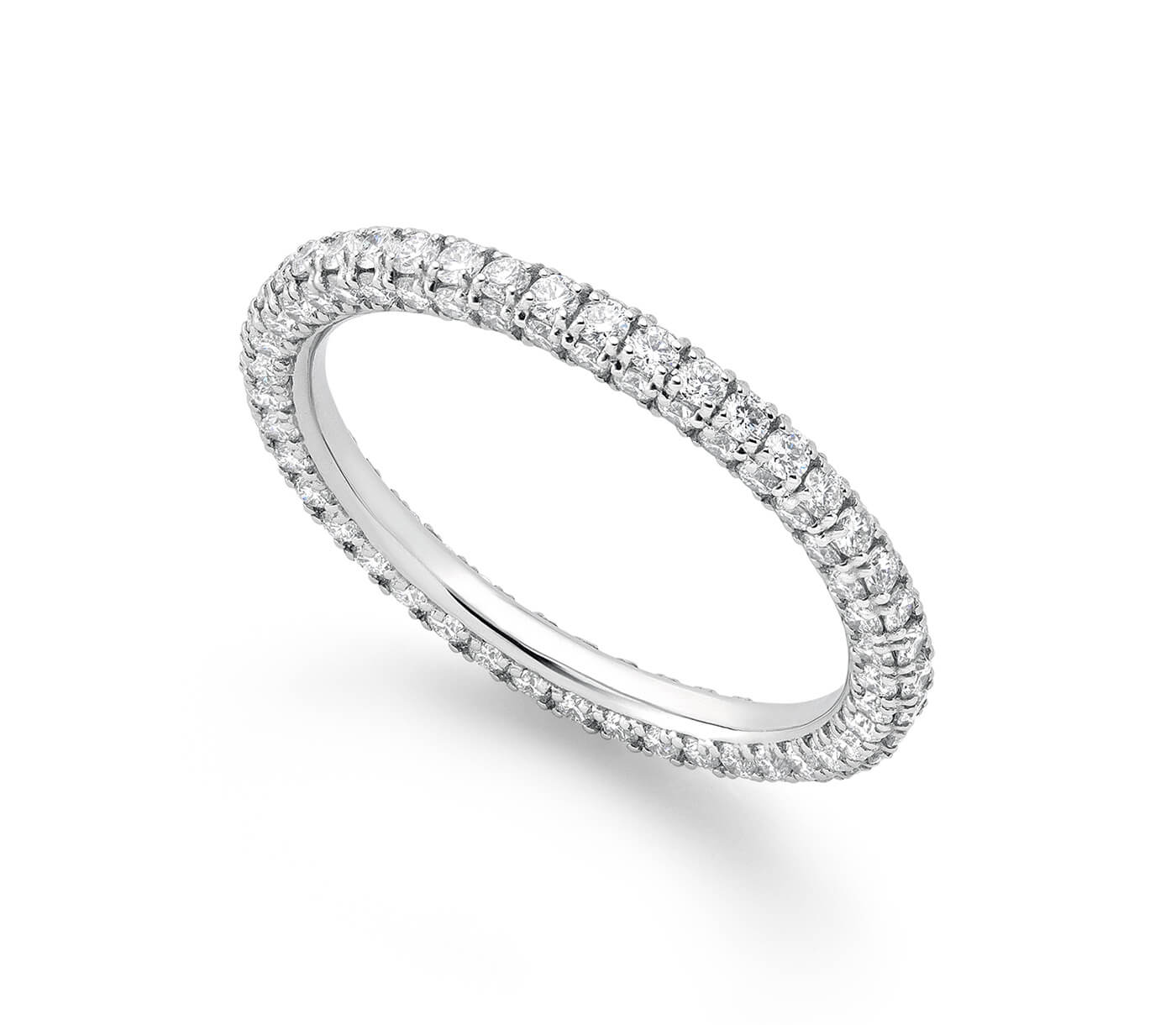 「Timeless Platinum950」の強度を活かした、フルエタニティリング。台座のみの枠にダイヤモンドを浮かせ、超極細の爪で一周セッティングしました。