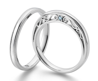 双子のように誕生した奇跡のダイヤモンドを、ふたりのリングにセッティング。ダイヤモンドの表裏に浮かぶハートとアロー(矢)の輝きは、まるでふたりの永遠の絆を天使が見守っているようなイメージに仕上げています。
