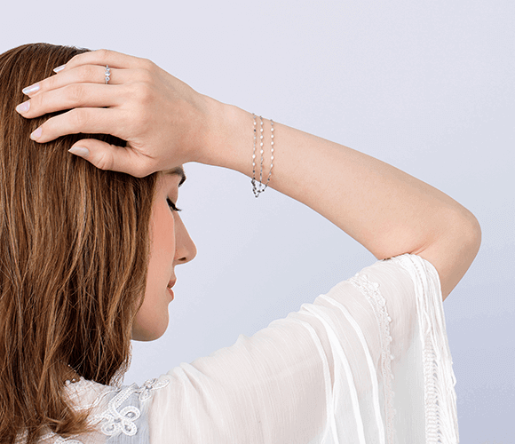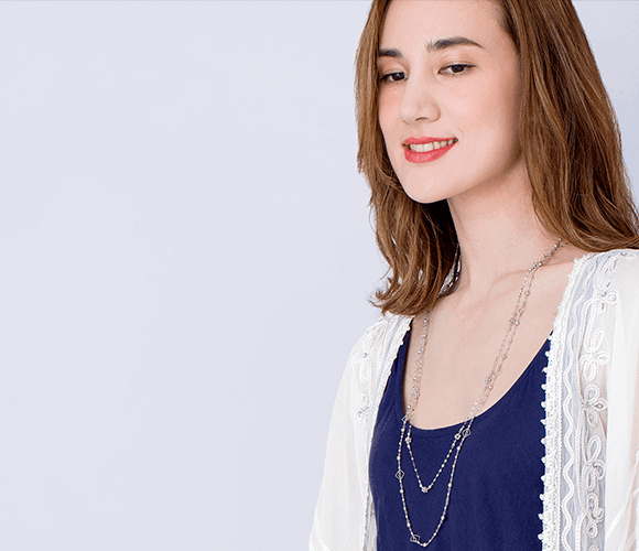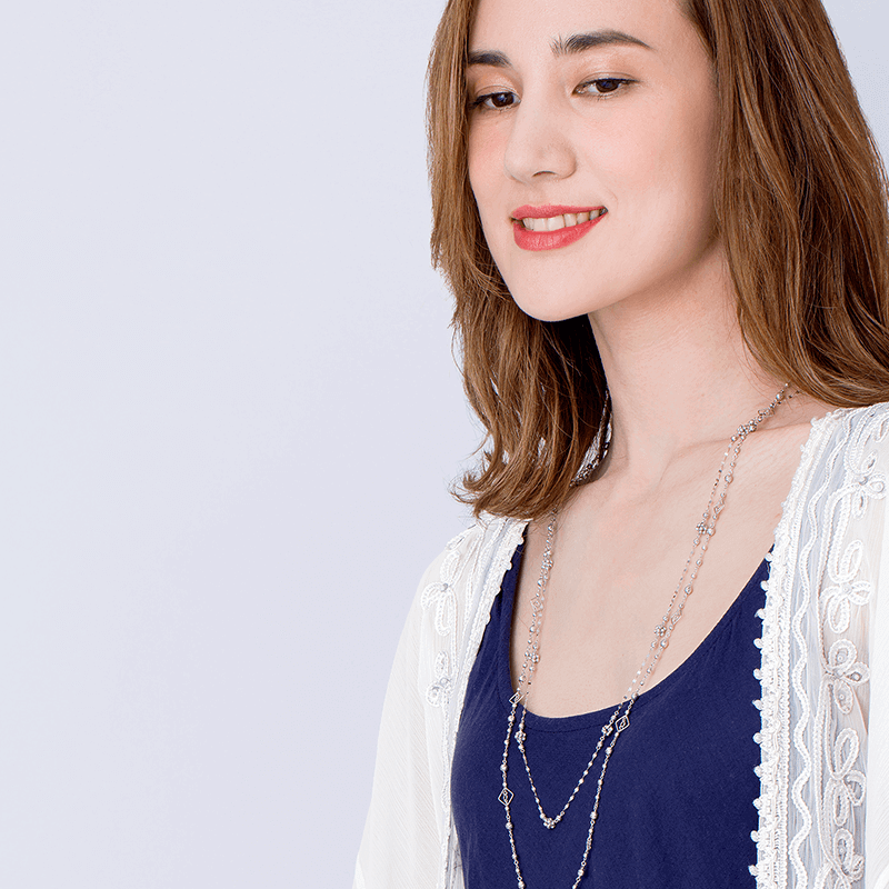 ネックレスは長さを変えたり、ブレスレットにしたりと使い方まで楽しんで。