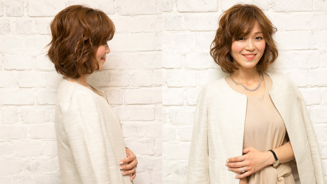 「お花を散りばめたような可憐なリングとリボンリング、レースを思わせる凝ったデザインのネックレスでフェミニンにまとめてみました。可愛らしいデザイン同志を合わせても甘すぎず、華やかなのに品よく決まるのは、プラチナの涼し気な雰囲気のおかげかなと思います。ジュエリーにマッチした大き目のウェーブのヘアスタイルで、夏らしいフェミニンスタイルが楽しめました」(杉山さん)