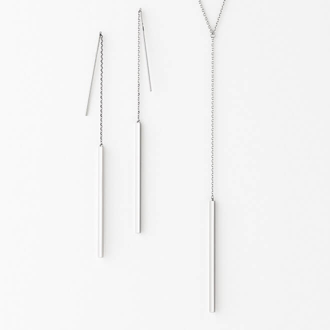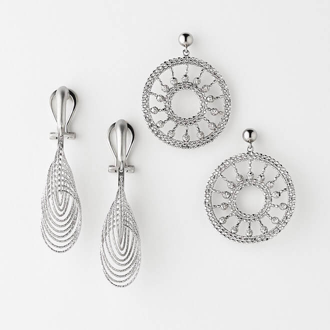 プラチナのクールな艶めきが美しいネックレスとピアス。